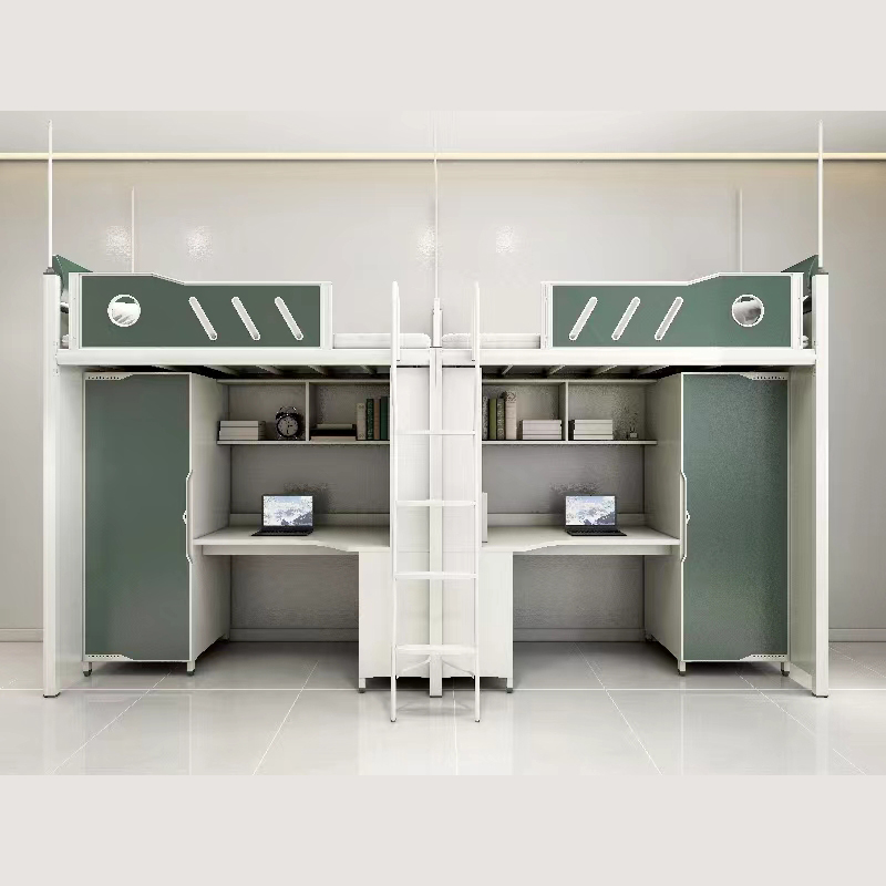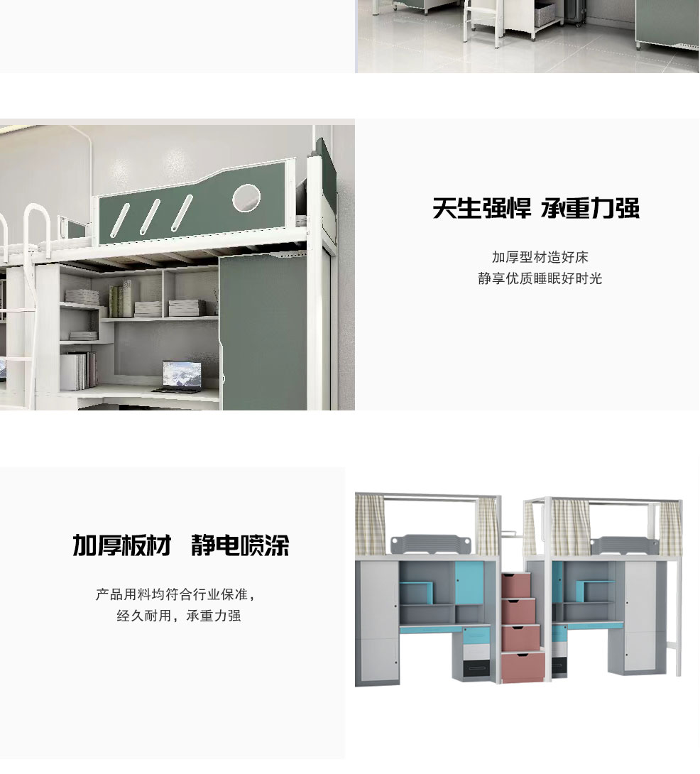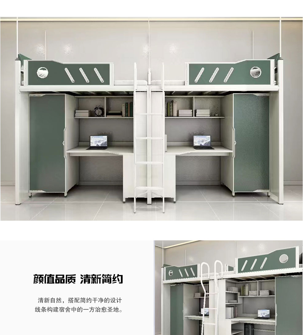 二連3人位公寓床1.整體規(guī)格:L4110*W900*H2120mm/2900mm,;2.邊立柱:采用(V65閉口型材),料厚1.2mm的閉口型管材,立面8個(gè)。立柱上下兩端口安裝工程塑料靜音內(nèi)塞,上端內(nèi)塞...
