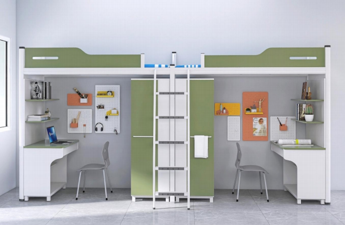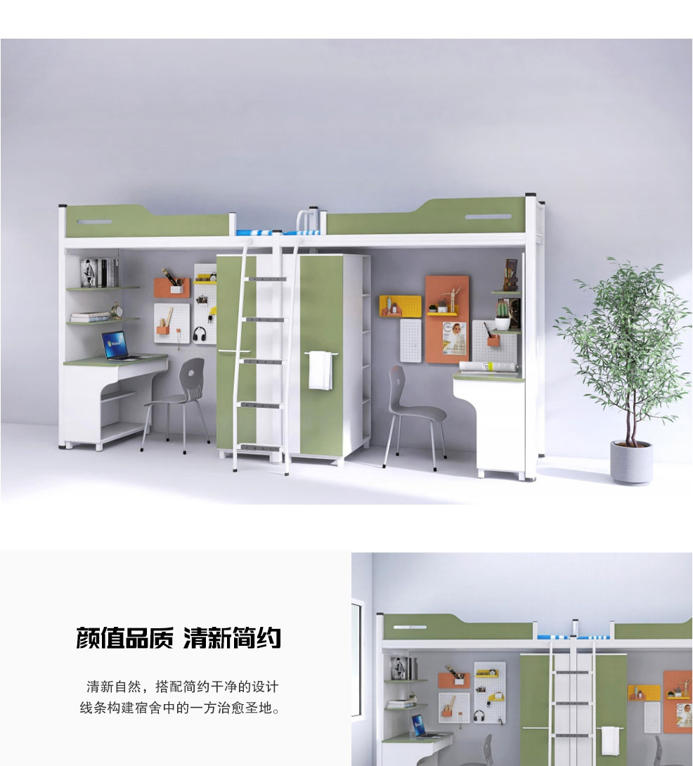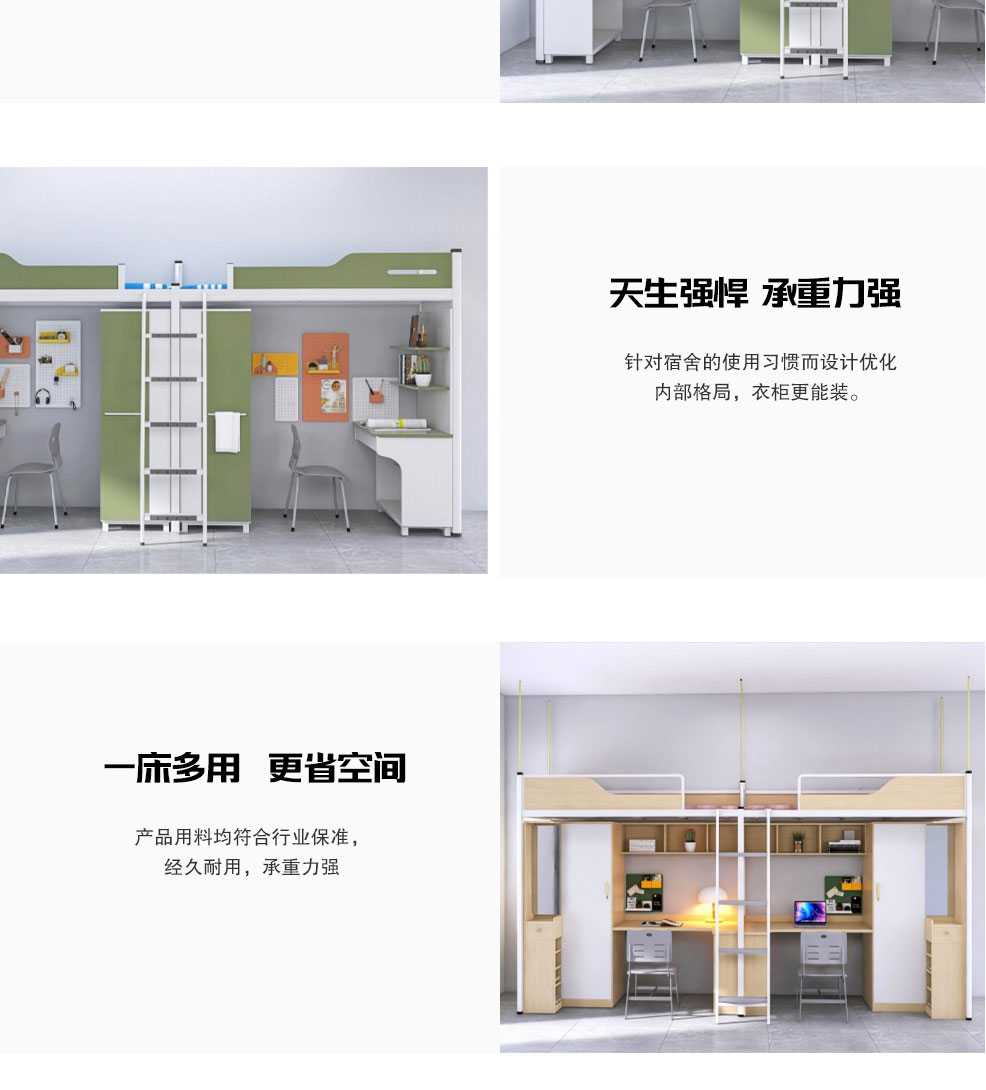 二連3人位公寓床1.整體規(guī)格:L4110*W900*H2120mm/2900mm,;2.邊立柱:采用(V65閉口型材),料厚1.2mm的閉口型管材,立面8個(gè)。立柱上下兩端口安裝工程塑料靜音內(nèi)塞,上端內(nèi)塞...