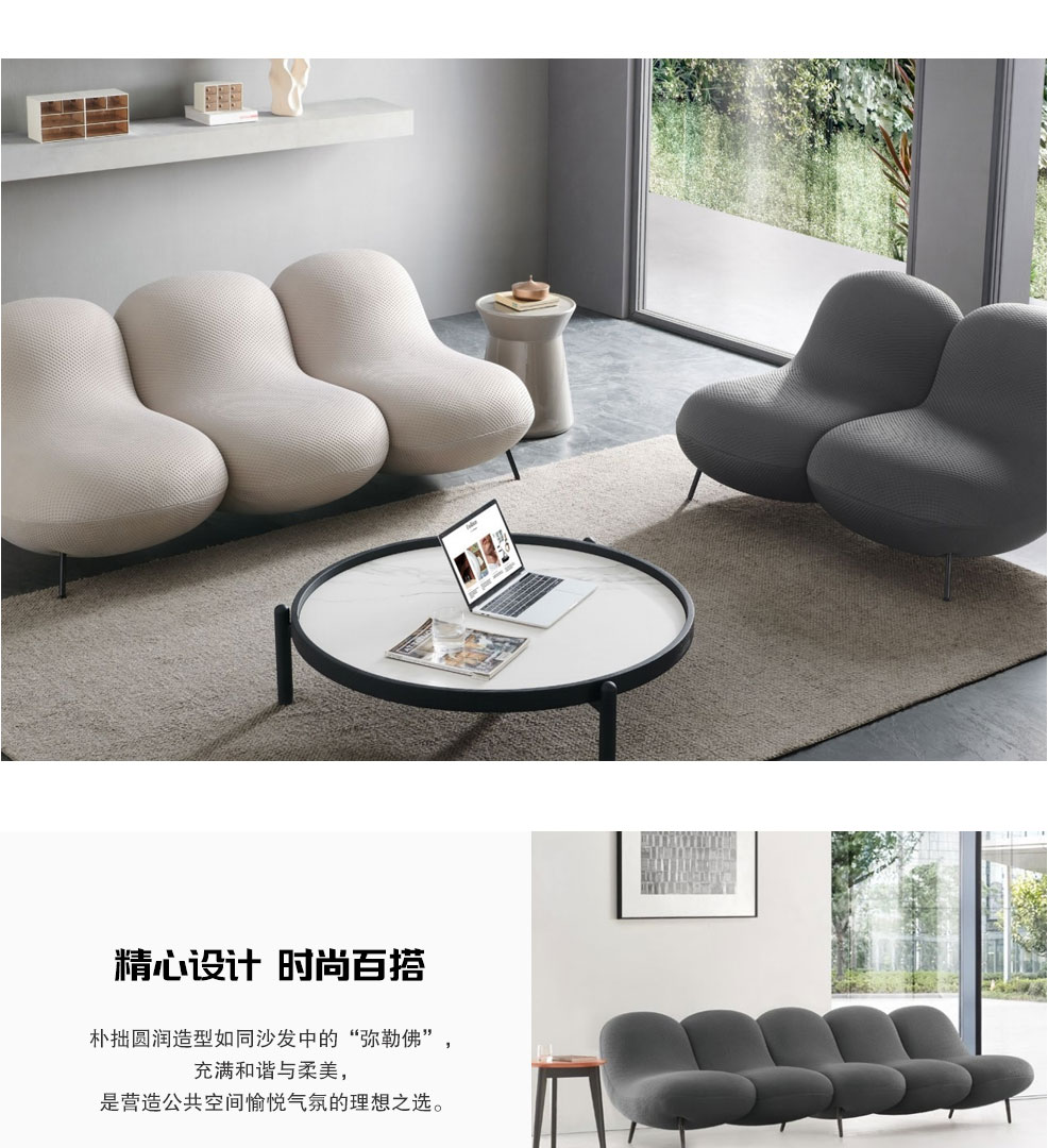 樸拙圓潤造型如同沙發(fā)中的“彌勒佛”,充滿和諧與柔美,是營造公共空間愉悅氣氛的理想之選。